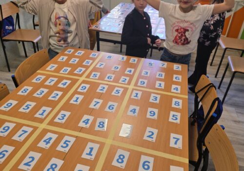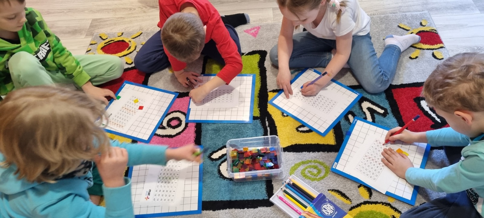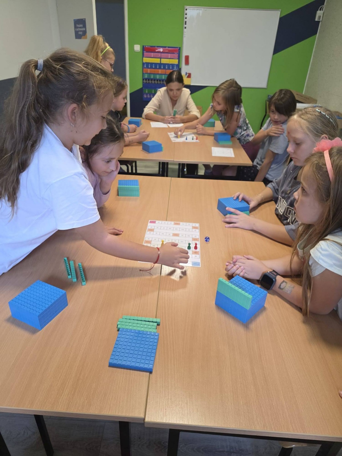 Matematyki uczymy poprzez eksperymentowanie, różnego rodzaju gry i szereg ćwiczeń nie kojarzących się w pierwszej chwili z matematyką. Rodzaj i liczba pomocy stosowanych na naszych zajęciach mocno odbiega od stereotypu do jakiego przywykliśmy czyli wkuwanie, tablica, kartka i długopis.